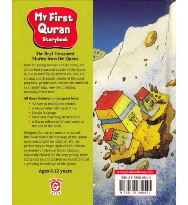 Here for young readers and listeners, are all the best treasured stories of the Quran in one beautifully illustrated volume. The stirring and dramatic stories of the great prophets, peoples and nations are unfolded as a family saga, one event leading naturally to the next. All these features in one great book: * 42 easy to read Quran stories. * A moral value with each story. * Simple language. * Vivid and charming illustrations. * A Quran reference for each story at the end of the book. Designed for use at home or at school, this book makes the message of the Quran more meaningful for children. It’s the perfect way to begin your child’s lifetime adventure of personal Quran reading! Especially chosen for the very young, these stories act as a foundation on which to build a growing knowledge of the Quran.