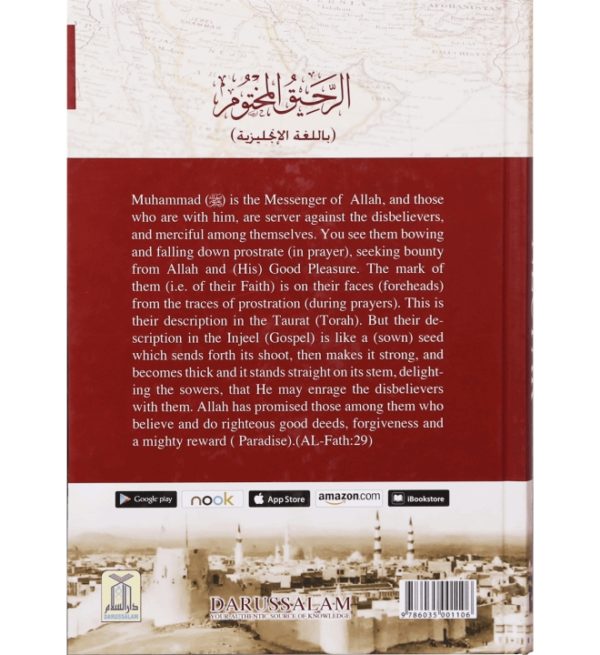 A complete authoritative book on the life of Prophet Muhammad (S) by Sheikh Safi-ur-Rahman al-Mubarkpuri. It was honored by the World Muslim League as first prize winner book. Whoever wants to know the whole life style of the Prophet in detail must read this book. Muhammad (S) is the Messenger of Allah, and those who are with him, are severe against the disbelievers, and merciful among themselves. You see them bowing and falling down prostrate (in prayer), seeking bounty from Allah and (His) Good Pleasure. The mark of them (i.e. of their Faith) is on their faces (fore heads) from the traces of prostration (during prayers). This is their description in the Taurdt (Torah). But their description in the Injeel (Gospel) is like a (sown) seed which sends forth its shoot, then makes it strong, and becomes thick and it stands straight on its stem, delighting the sowers, that He may enrage the disbelievers with them. Allah has promised those among them who believe and do righteous good deeds, forgiveness and a mighty reward (Paradise). (Al-Fath: 29) The Prophet Muhammad (S) said: `The example of guidance and knowledge with which Allah has sent me is like abundant rain falling on the earth. Some of which was fertile soil that absorbed rain-water and brought forth vegetation and grass in abundance. (And) another portion of it was hard and held the rain-water and Allah benefited the people with it and they utilized it for drinking, (making their animals drink from it) and to irrigate the land for cultivation. (And) a portion of it was barren which could neither hold the water nor bring forth vegetation (then that land gave no benefits). The first is the example of the person who comprehends Allah`s Religion (Islam) and gets benefit (from the knowledge) which Allah (Azawajal) has revealed through me (the Prophet ) and learns and then teaches it to others. The (last example is that of a) person who does not care for it and does not take Allah`s Guidance revealed through me (he is like that barren land).` (Al-Mukarramah)